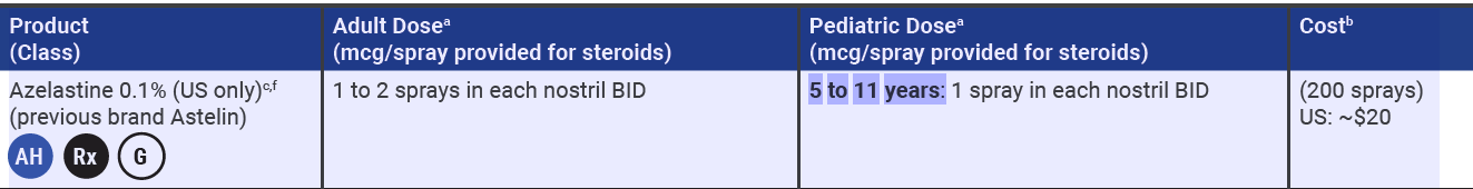 For example, if you look at the provided image, the reader would reader the header as Product Adult Dose a Pediatric Dose a Cost b (and then) Class mcg/spray provided for each steroids mcg/spray provided for each steroids