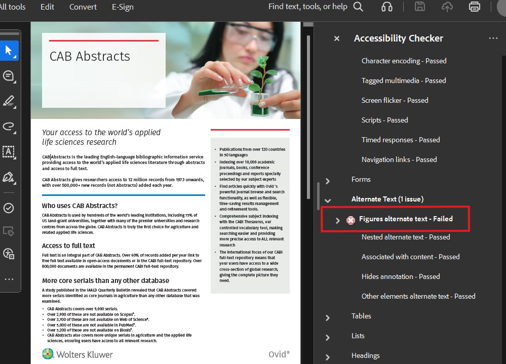 Notes: Accessibility check noted "Figures alternate text- Failed